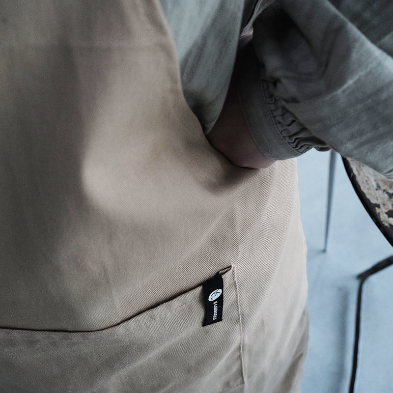 Grembiule in cotone 240 g/m² color kaki con stampa serigrafica di colore nero.