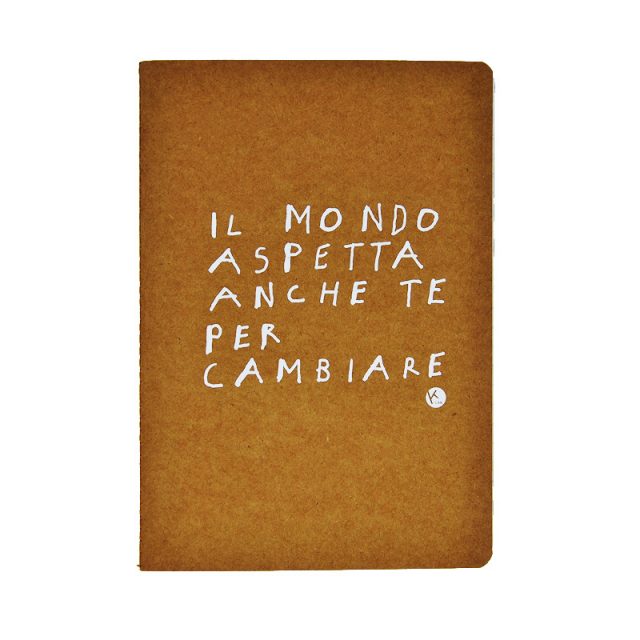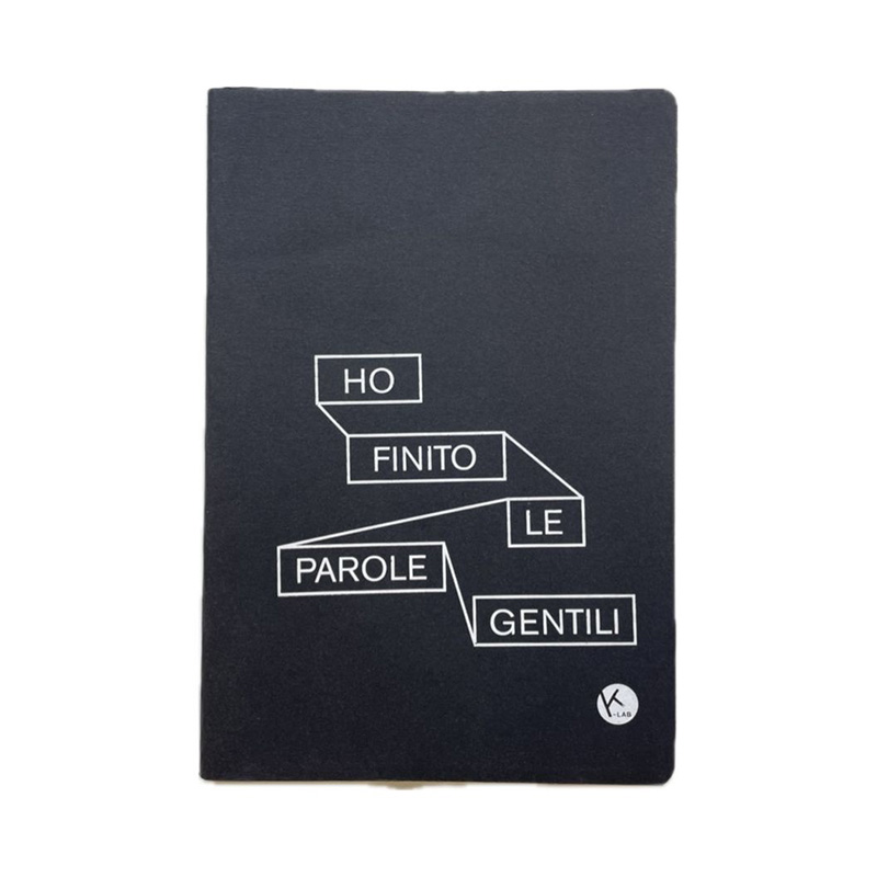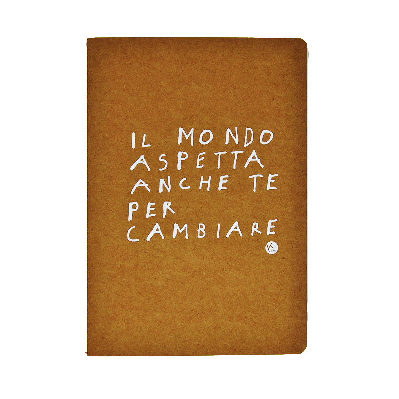 Notes in carta riciclata con copertina in due varianti di colore (Avana e Nero) con stampa serigrafica bianca realizzata nel laboratorio socio-occupazionale EcoCreativo. Le pagine interne, di colore bianco, sono a righe.